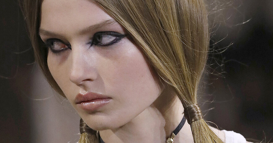 О том, что в 2023 году будут модными низкие хвосты и косички мы узнали еще в сентябре на Неделях моды, однако выход сериала «Уэнсдей» в этом декабре только сильнее укрепил эту прическу в звании тренла. Разделите волосы на прямой пробор и соберите два хвоста или косички — главное, чтобы они были закреплены как можно ниже. В целом, хвост можно сделать и один. Чтобы он смотрелся эффектнее, закрепите его крупной резинкой или заколкой или, наоборот, сделайте «невидимое» крепление, обмотав прядь волос вокруг прозрачной резинки.