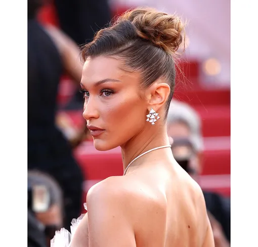 По 90-м сходит с ума Белла Хадид — в последние месяцы все ее прически вдохновлены именно тем временем. Советуем не отставать и выходить в свет с «пучком выпускницы» — волосами, заколотыми от шеи наверх.