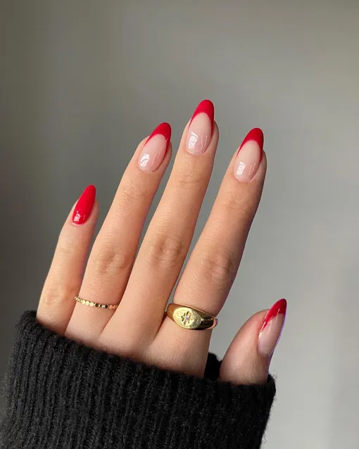 Даже если отслеживание трендов не входит в список ваших основных увлечений, вы наверняка знаете: красный — главный цвет сезона. Так что попадание ярк-красного французского маникюра в этот список — вполне закономерно. Это отличный выбор для тех, кто хочет примерить актуальный тренд, но не хочет носить красный лак в однотонном покрытии.