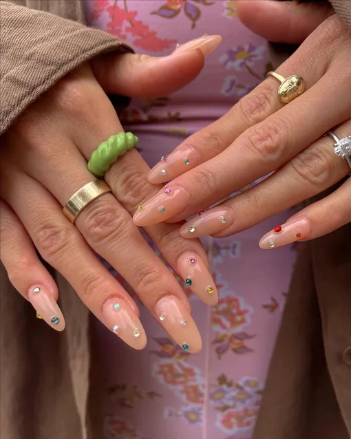 Камни (особенно, если они настоящие) хорошо смотрятся в колье и серьгах, но никак не на ногтях. Инкрустированные стразами разных размеров ногти стоит оставить где-то позади и больше никогда к ним не возвращаться. Выглядит это нелепо, да и ногтям такая «ноша» не по силам. Чтобы крупные стразы держались на ногтях, необходимо много специального клея и геля для укрепления, а для ногтей это в буквальном смысле тяжело. В будущем, когда всю это «красоту» вы снимите, ногти будут ломаться и отслаиваться, а на их восстановление уйдет не один месяц.