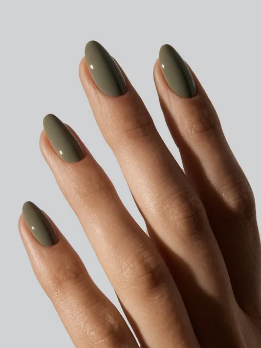 Наш фаворит среди трендовых оттенков маникюра 2026 — шалфеевый зеленый. Спокойный, с едва различимым серым подтоном, он всегда выглядит очень необычно, но при этом остается универсальным. Его можно носить в однотонном покрытии (такой мягкий оттенок никогда не будет выглядеть кричащим), а можно комбинировать с другими цветами. В паре с шалфеевым мы бы рекомендовали использовать такие же приглушенные пастельные оттенки или, наоборот, контрастные — шоколадный или темно-синий.