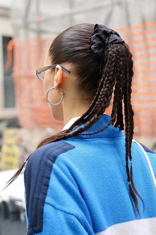 Для более искушенных есть «хвост-медуза» — любимая прическа Беллы Хадид и Кендалл Дженнер. В целом, хитростей там никаких нет: вам всего-то нужно собрать волосы в тугой хвост на комфортной вам высоте, а затем разделить его на пряди (их количество варьируется в зависимости от густоты волос и желаемого результата) и заплести их в косы. Для «основного» хвоста можно использовать яркую резинку, а косички лучше закрепить тонкими резинками в тон волосам. Чтобы прическа выглядела безукоризненно нанесите на корни волос немного геля или мусса для укладки — так хвост получится идеально гладким, а прическа точно продержится весь день, вне зависимости от того, насколько активно вы планируете проводить время.