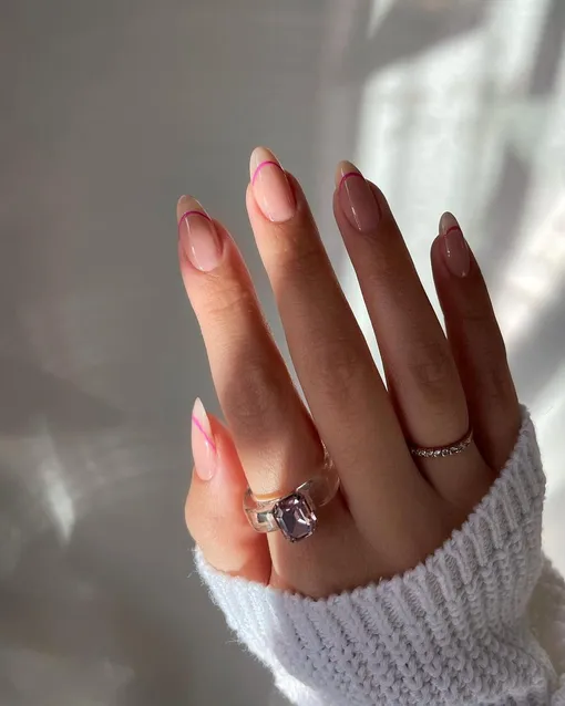 Поклонникам ярких дизайнов наверняка придется по вкусу цветно или с рисунком французский маникюр, а вот верным поклонникам минимализма — «невидимый». Этот дизайн стал невероятно популярен на просторах TikTok, а сейчас полюбился многим звездным модницам. В чем отличие «невидимого» френча от любого другого — интенсивность покрытия кончика. Обычно именно на него приходится акцент — будь он белоснежный, цветной или с принтом. Здесь же все наоборот.