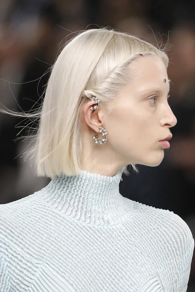 Идеальное решение для тех, кому изрядно надоел каскад, возглавляющий списки трендов на протяжении последней пары сезонов. Этой осенью на модную арену возвращается идеально ровный срез — это касается и основной длины, и челки. Четкие линии визуально вытягивают лицо и выгодно подчеркивают его черты. Длина волос может быть любой, однако стилисты показа Versace отдали предпочтение длине чуть ниже плеч, и мы абсолютно согласны с их выбором. Единственный минус такой стрижки — постоянная необходимость в укладке.