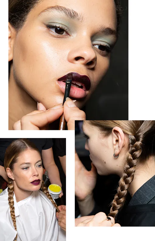 Сегодня в рамках Миланской недели моды прошел показ Max Mara. На фоне сдержанных утилитарных образов особенно выделялись макияж и прически моделей. За них отвечала звездная команда: визажист Том Пешо и стилист по волосам Сэм МакНайт. Вместе они вдохновились Уэнздей Аддамс, ее фирменными тугими косичками. Для пущей готичности к ним добавили темно-сливовые, почти черные, губы. А напоминанием о том, что это все же весенне-летний сезон, стал макияж глаз — пастельно-голубые полупрозрачные смоки добавили образу романтики.