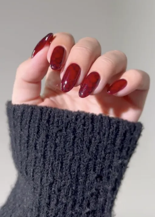 TikTok блогеры предлагают выполнять «вампирский» маникюр на длинных ногтях формы миндаль или овал, однако более подходящей для повседневной носки нам кажется форма мягкий квадрат. На коротких ногтях такой яркий маникюр будет смотреться более сдержано, да и в повседневной жизни вам будет с ними куда комфортнее, чем с длинными. Впрочем, если вы планируете отправиться на вечеринку в честь Хеллоуина, можете повторить дизайн из TikTok. Такой маникюр точно станет эффектным дополнением к любому готическому образу.