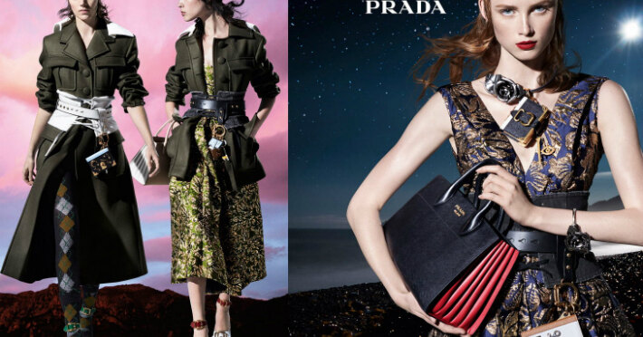 Миучча Прада – не из тех, кто привык мелочиться. «Зачем ограничивать количество героинь рекламной кампании однозначным числом?» – решила она и пригласила к участию целых 27 моделей (предыдущий рекорд – 18 девушек в кампании Prada весна-лето 2014). Такое решение дизайнер объяснила тем, что со своей последней коллекцией она не ассоциирует какое-то одно лицо. Полный список участниц включает Рус Эбелс, Наоми Эбигейл, Наоми Аксенте, Юн Юнг Бае, Лекси Боулинг, Витторию Черетти, Даниэлле Элсворт, Фрею Беху Эриксен (давнюю любимицу Прады), Анджелику Эртэл, Сару Дийкинк, Паулину Франковску, Аманду Гудж, Кэйти Грин, Ондрию Хардин, Лорену Мараши, Аманду Мерфи, Лондон Майерс, Джулию Нобис, Марину Перец, Сашу Пивоварову, Фей Фей Сун, Стеллу Теннант, Рианн ван Ромпей, Натали Вестлинг, Кики Уиллемс, Ракель Зиммерман и, наконец, Милу Йовович.