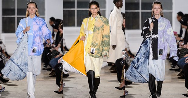 Для весны и лета 2019 года Джек МакКалоу и Лазаро Эрнандес создали универсальную и довольно минималистичную коллекцию, в основу которой легли просторные платья и асимметричные юбки из денима, свободные рубашки, удобные сарафаны, удлиненные жакеты и женственные тренчи. Ее лейтмотивом стали жилеты в ковбойском стиле, шейные однотонные платки и сапоги с широким голенищем из мягкой кожи, перевязанные на щиколотке узлом. Также многие модели — в том числе и участвовавшая в шоу Кайя Гербер — появлялись на подиуме с утрированно большими сумками из ткани. Все эти вещи Proenza Schouler созданы для жизни в большом городе: именно ритмом мегаполиса дизайнеры вдохновлялись при продумывании новой коллекции. А если добавить к урбану немного вестерна, как это сделали Джек и Лазаро, то получатся очень колоритные, но в то же время максимально практичные и удобные наряды для активных будней, которые легко можно носить уже этой осенью.