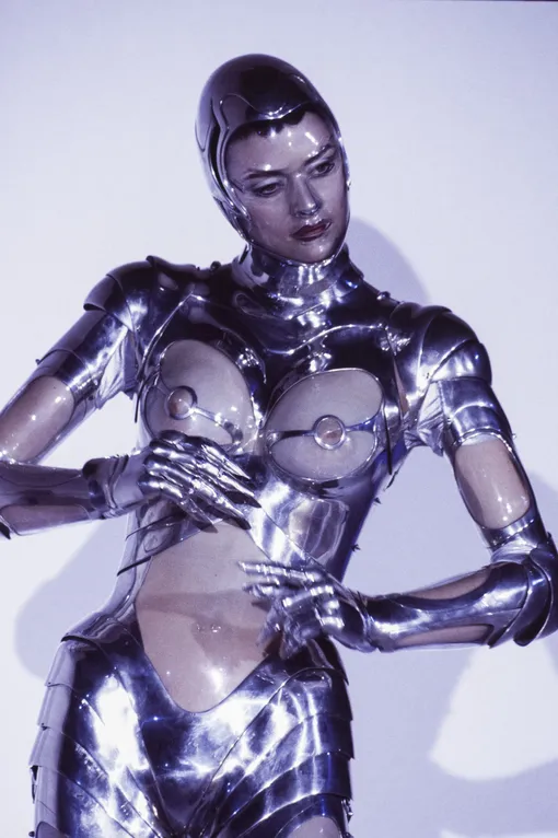 Тьерри Мюглер стал первым дизайнером, который космическую тему трактовал принципиально иным образом, чем его более старшие коллеги. Осенью 1995-го года он представил кутюрную коллекцию, в которой было несколько образов сексуальных киборгов — настоящих соблазнительниц межпланетного масштаба. Золотой корсет и серебряный костюм робота стали настолько культовыми образами, что впоследствии не раз появлялись в клипах и глянце даже годы спустя. Несколько луков с того показа дизайнер даже повторил для тура Бейонсе I am... Sasha Fierce 2009 года.