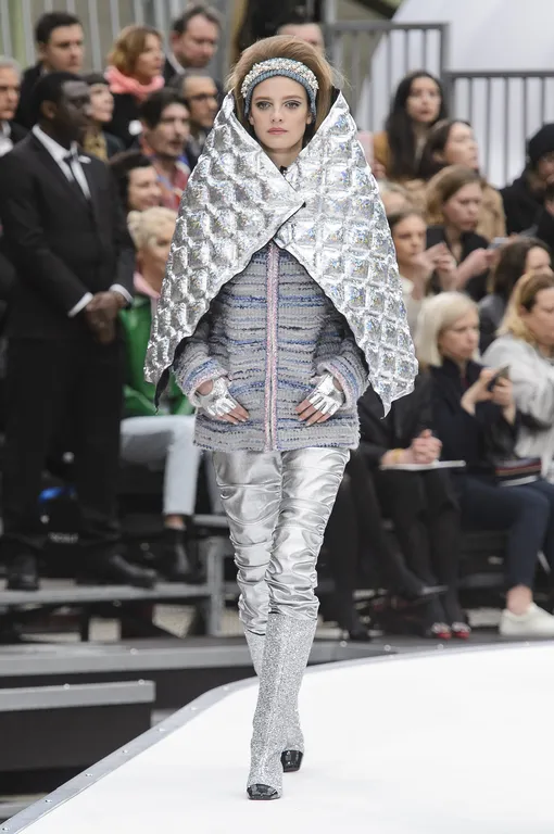 Карл Лагерфельд всегда славился масштабными задумками и безграничной фантазией. И когда ему стало немного тесно не Земле, он отправился прямиком в космос — и пригласил в это путешествие нас. Графичный макияж моделей, прически с начесом, А-образны юбки и сапожки на небольшом устойчивом каблуке явно отсылали к «космическим» показам 60-х, а вот металлизированные ткани (даже классический твид) и минималистичные рюкзаки вместо классических сумок-конвертов давали понять, что Кайзер на самом деле устремлен лишь в будущее. Центральной деталью показа была огромная ракета с логотипом Chanel — в финале она стала частью впечатляющего пиротехнического шоу. Некоторым гостям тогда даже казалось, что она вот-вот взлетит.