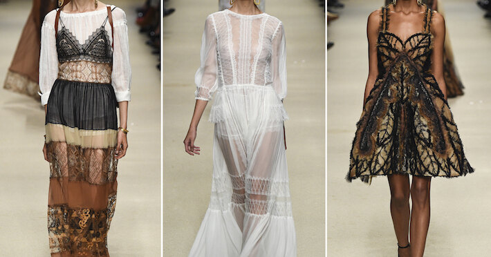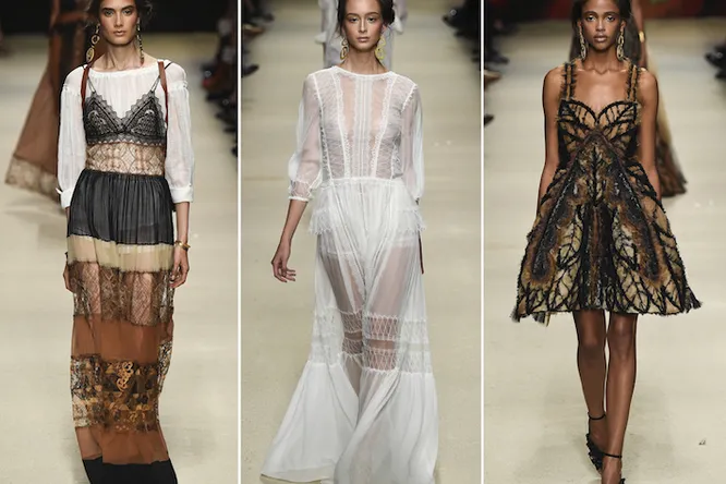 Этнические мотивы и стиль сафари ярко выделяют весенне-летнюю коллекцию Alberta Ferretti среди других: минимализм, готика и барокко, прогулявшиеся по многим показам нью-йоркской и лондонской Недель моды, уступают им место без колебаний. На радость всем, кто любит насыщенные земляные тона, изделия, выполненные в сложных техниках пэчворка, плетения и росписи, переливы на крыльях бабочек и растительные элементы, Альберта Ферретти создала более 50 интересных образов, представленных накануне в рамках Недели моды в Милане.