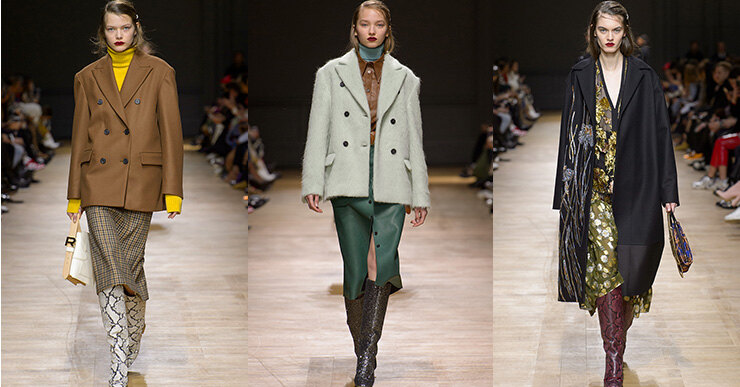 Новая осенняя коллекция Rochas выглядит так, будто Алессандро Дель'Аква разъединил яркие монохромные тотал-луки pre-fall и сложил вещи по законам какофонии — цветовой и узорной