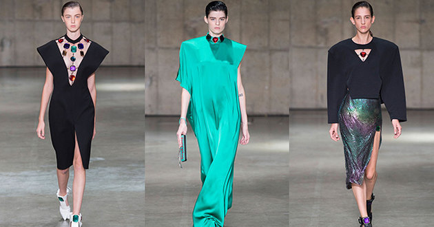 Блузы из прозрачных лоскутов, провокационные футболки и «драгоценные» платья в весенне-летнем шоу Christopher Kane