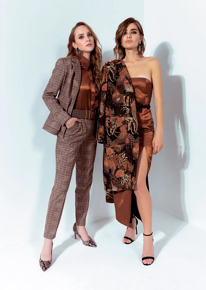 «Я очень люблю моду 70-х не только за то, что она принесла нам в плане кроя и посадки. Этот период характерен тем, что одежда все еще подчеркивала красоту тела, силуэт, линии, но в то же время делала акцент и на личности, индивидуальности, силе женщины и ее характере», – рассказывает о своей новой коллекции основательница бренда Paola Ray Ольга Панченко. Ретронотки в ней действительно звучат отчетливо: летящие платья с бантами на шее и подчеркнутой талией, оттенки бежевого, характерные принты, фасоны и сочетания. Наши фавориты – разные вариации power suit: нарядные жаккардовые, широкие кюлоты и пиджаки в тонкую полоску, шерстяные миди-юбки с объемными блузами, блейзеры с зауженными «брюками-сигаретами» в клетку. И да, конечно, сапоги. Берем и носим с теми самыми женственными платьями и юбками. В офис, на свидание, открытие выставки и по любым другим поводам – сочетаний у Paola Ray наберется как раз на каждый день месяца.