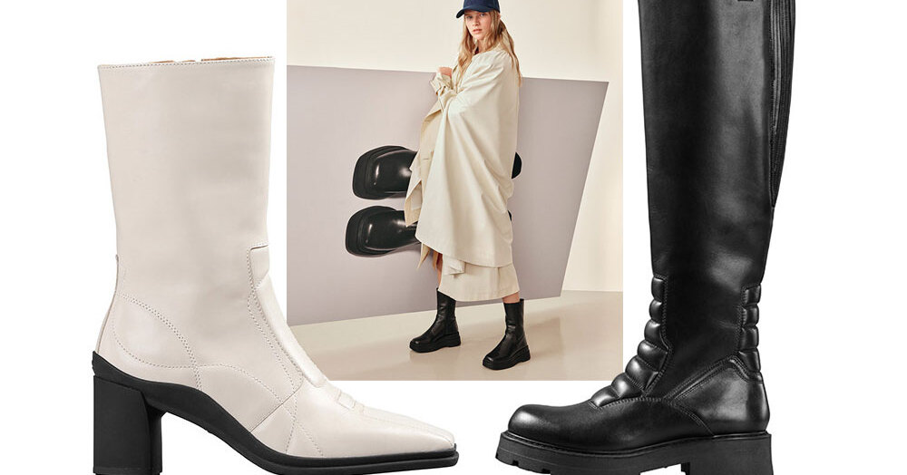 Новая коллекция марки родилась на стыке минимализма и стиля мотокросс. Сдержанный лаконизм встречается с дерзкими деталями: толстой резиновой подошвой и стеганой отделкой. Самые харáктерные модели сезона — высокие сапоги с широким голенищем, представленные в черном и светло-сером оттенке бетона: в таких можно забыть о непогоде даже за городом. Бунтарский дух коллекции смягчают уже ставшие для Vagabond фирменными ботильоны на маленьком-каблуке: из черной лаковой кожи, белые, бордовые, рыжие и под рептилию.