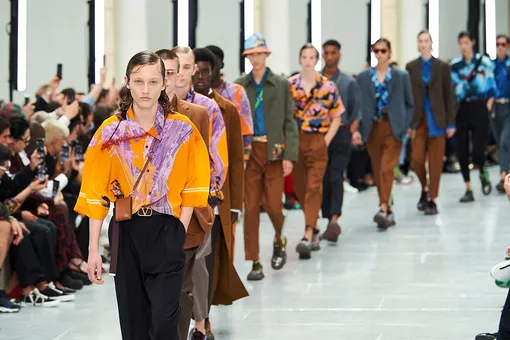 Брюки с цветными лампасами, худи с бахромой и полотна Роджера Дина в коллекции Valentino