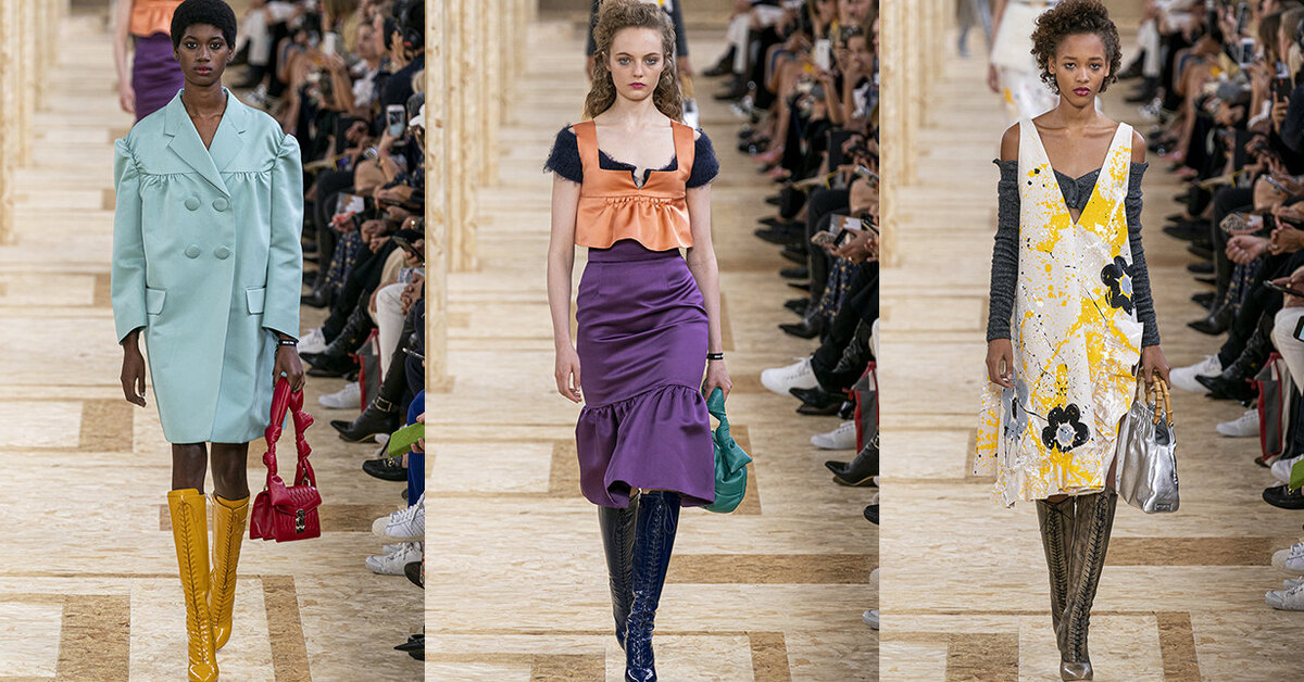 Брызги краски на оборках, цветы с детских рисунков и меховые жилеты в коллекции Miu Miu