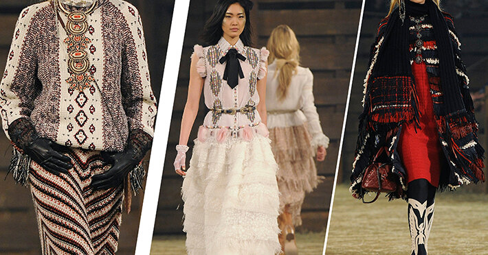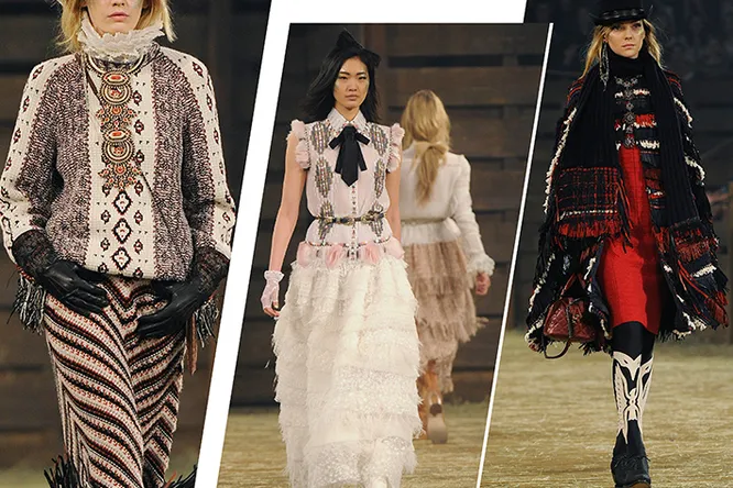 Сразу после премьеры состоялось само шоу. Основными цветами новой коллекции стали белый, бежевый, красный и черный. Лагерфельд смело соединил романтику Дикого Запада с современной элегантностью: на показе ковбойская бахрома соседствовала с аристократичным твидом, а коктейльные платья – с индейскими пончо.