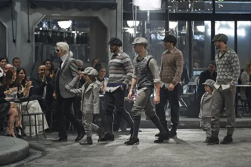 Франко-итальянская коллекция оказалась выдержанной в культовых для Дома приглушенных тонах – бежевом, кремовом, сером, черном и темно-синем, к которым присоединились свежие аккорды охристого, апельсинового и кофейного оттенков. Твид, мохер, шерсть, кашемир, кожа, джерси, вельвет, шелк, шифон, жоржет – список использованных Лагерфельдом материалов по традиции восхищал своей длиной. В поиске той самой золотой середины между парижской элегантностью и хорошим итальянским гламуром дизайнер составил несколько десятков образов на все случаи жизни. Таких, что обсуждать их можно было в течение всей вечеринки Chanel, последовавшей за показом. Из пространства Cinecittà Studios не смогли уйти ни задействованные в черно-белом фильме модели, ни амбассадоры Chanel Кристен Стюарт, Анна Муглалис и Чжоу Сюнь, ни Руни Мара, Джеральдин Чаплин, Клотильда Эсме и другие дружественные Дому актрисы.