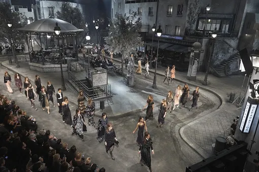 Перед началом показа гости собрались в Cinecittà на коктейль Chanel и закрытый просмотр нового фильма Лагерфельда Once and Forever с Кристен Стюарт и Джеральдин Чаплин. Потом все собравшиеся переместились в Teatro N°5 – тот самый павильон, в котором любил работать Феллини. К показу Chanel Métiers d’Art его подготовил дизайнер Марсель Карне, создавший черно-белые декорации в духе Александра Траунера, великого художника-постановщика прошлого века. Под звуки фортепиано, рождавшиеся под пальцами композитора Кристофа Шассоля, модели Chanel появлялись друг за другом в новых образах Chanel Métiers d’Art.
