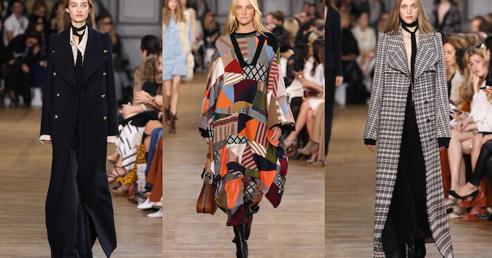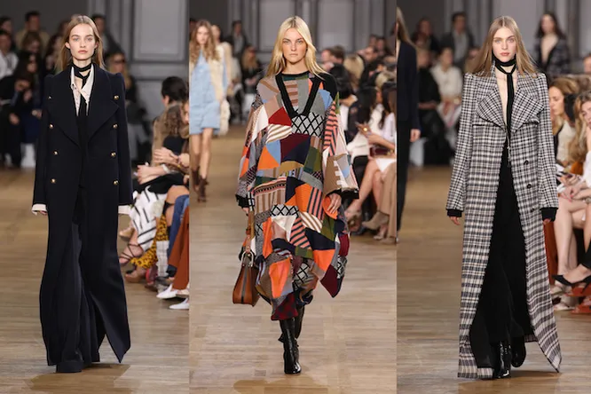 При кажущейся легкости и доле беззаботности коллекция Chloé, представленная накануне в Париже, пронизана строгой элегантностью. Героиня будущего сезона празднует эксцентричный классицизм как современное движение. Бледные, пастельные оттенки согревает яркая палитра лавандового, бежевого и василькового. Первостепенная значимость отведена материалам – тактильное ощущение от вельвета, мельтона, шерсти и меха барашка подчеркнуто кожей питона, чувственностью шелкового крепа и деликатностью кружева.