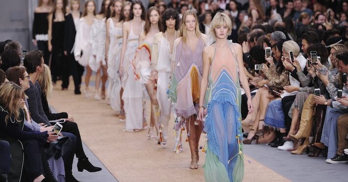 Спортивный шик, на минуту повергший поклонников богемного Chloé в замешательство, быстро сменился этническими узорами, кружевом и пастельными оттенками, гораздо более привычными для бренда. Наряду с нежнейшими вещами креативный директор Chloé Клэр Уэйт Келлер предложила парижской публике целый ряд непринужденно выглядящих платьев, рубашек и комбинезонов из синего денима, а также впечатляющий диапазон идеальных белых вещей. Последние в новой весенне-летней коллекции освежает грамотное вмешательство ярких цветов: даже легкое прикосновение красного, желтого и голубого в корне меняет образы.