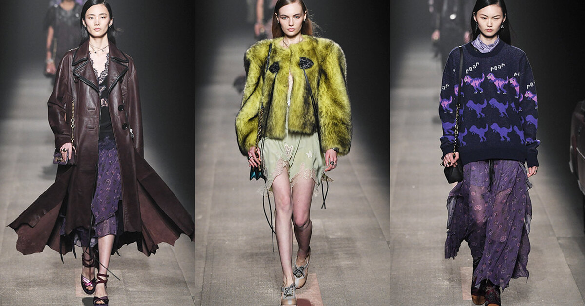 Цветные шубы, тренчи в шоколадных оттенках и топы-хамелеоны на шоу Coach в Шанхае