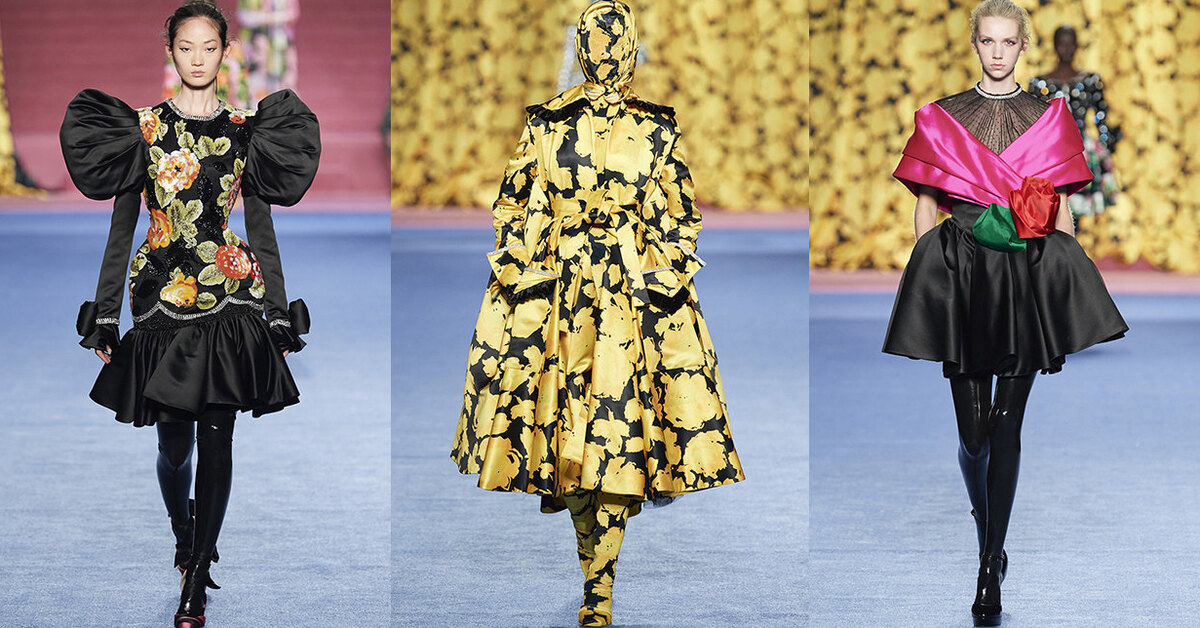 Цветы с головы до пят, платья в стразах и мужские костюмы в коллекции Richard Quinn
