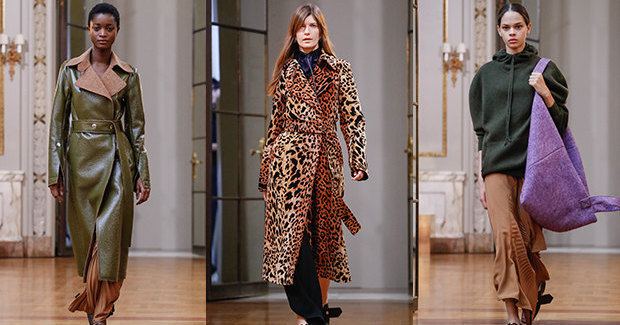 Кожаные пальто, безразмерные свитера, платья-толстовки и гигантские шоперы в стиле Стеллы МакКартни в коллекции Victoria Beckham, осень-зима 2018—2019