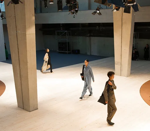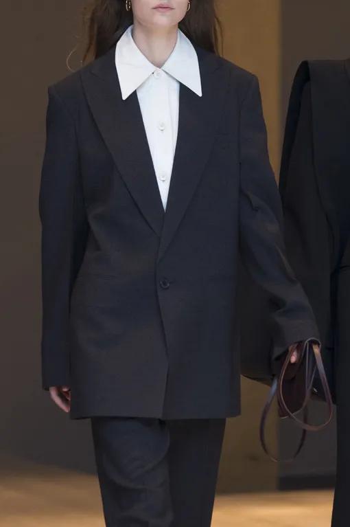 Еще одной героиней сегодняшнего дня Парижской недели моды стала Фиби Файло, показавшая коллекцию-продолжение своей предосенней линейки для Céline, адресованной работающей женщине. Она объединяет дизайнера с такими ее коллегами, как Кэти Хиллер и Луэлла Бартли, Демна Гвасалия и Симон Порт Жакмю. Выбирая текстурные ткани вроде норки, крепа, трикотажа и вареной шерсти автор пророчит нам осень в точеных, будто лепных силуэтах — здесь есть и брючные костюмы с неизбежными в этом сезоне широкоплечими жакетами с атласными лацканами, идеально скроенные длинные пальто, а также тренчи-халаты, пыльники и длинные платья-рубашки.