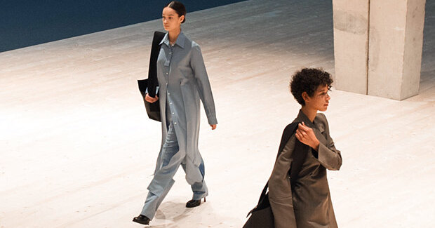 Еще одной героиней сегодняшнего дня Парижской недели моды стала Фиби Файло, показавшая коллекцию-продолжение своей предосенней линейки для Céline, адресованной работающей женщине. Она объединяет дизайнера с такими ее коллегами, как Кэти Хиллер и Луэлла Бартли, Демна Гвасалия и Симон Порт Жакмю. Выбирая текстурные ткани вроде норки, крепа, трикотажа и вареной шерсти автор пророчит нам осень в точеных, будто лепных силуэтах — здесь есть и брючные костюмы с неизбежными в этом сезоне широкоплечими жакетами с атласными лацканами, идеально скроенные длинные пальто, а также тренчи-халаты, пыльники и длинные платья-рубашки.