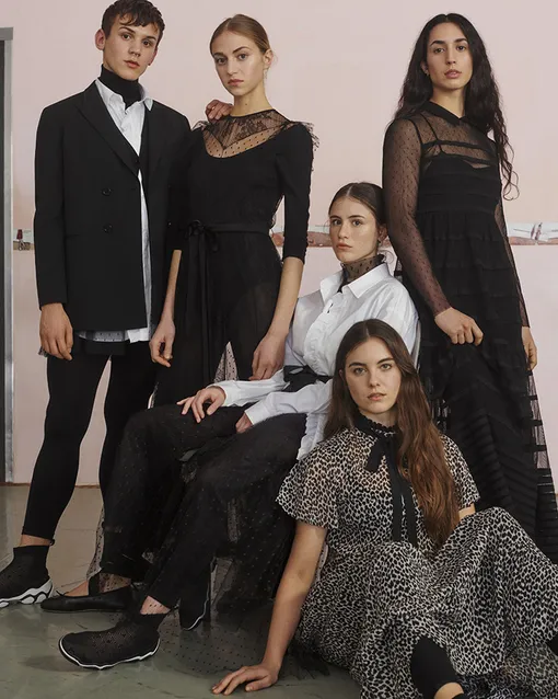 Изящное балетное искусство всегда было близко эстетике бренда Red Valentino, поэтому неудивительно, что Пьерпаоло Пиччоли предложил примерить вещи из своей новой осенней коллекции студентам Римской национальной академии танца. Танцовщики и хореографы получили полную свободу действий и идеально раскрыли характер шифоновых платьев с кружевными вставками и ручной вышивкой, невесомых юбок плиссе с росписью в китайском стиле, оверсайз-костюмов, джемперов-паутинок и жакетов с мягкими плечами и, конечно, кроссовок-чулок, издали напоминающих пуанты. Но главной находкой коллекции стали объемные пальто-коконы, в которые можно кутаться с октября по апрель и не бояться замерзнуть даже в тонком бальном платье.