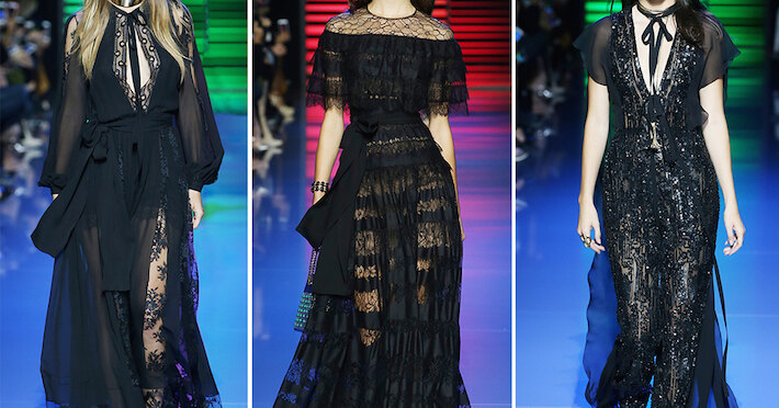 В том, что темное кружево, обувь на шнуровке, гладкие полупрозрачные ткани и вертикальная полоска захватили власть, в разгар парижской Недели моды уже никто не сомневается – эти устоявшиеся тренды еще раз поддержал магистр в области вечерних платьев Эли Сааб. С чувственностью, присущей каждому его творению, покорять сердца мужчин будет легче: этому способствуют и красное платье на одно плечо, и ажурные таинственно-готичные вещи черного цвета.