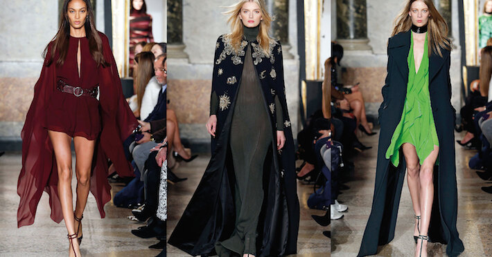 Несмотря на все перипетии жизни модного Дома, осенне-зимняя линия получилась очень эффектной. В центре внимания коллекции, навеянной энергетикой Джимми Пейджа из Led Zeppellin и Стиви Никс, черно-белые геометричные волны и зодиакальные созвездия. Падающие звезды, сияющие солнца и блестящие луны рассыпались золотой вышивкой практически на каждой модели. Принты с изображениями знаков зодиака красуются на бархатных шортах, мини-платьях, накидках oversize. Узкая обувь, монохромные платья, горизонтальная полоска, вельвет, шифон, мех – главные тенденции будущего сезона.