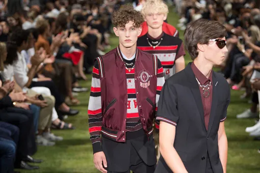 Рассуждая на тему развития мужской моды, Крис Ван Аш нередко позволяет себе вслух беспокоиться о том, найдется ли в гардеробе будущего место классическому мужскому костюму. Сегодня он перестал служить обязательным маркером успеха. Все чаще случается, что очередной парень в идеально скроенном костюме работает вон на того, другого — в вытертых джинсах, футболке и кроссовках. Поэтому свой юбилейный, десятый год на посту креативного директора мужской линии французского Дома Крис Ван Аш посвящает адаптации классического костюма к реалиям мира, в котором правит streetwear, а если говорить точнее, экспериментам по его адаптации. На протяжении всего весенне-летнего шоу он деконструирует классический пиджак и скрещивает его с предметами спортивного гардероба. Примерно такая же задача неизменно была на повестке дня у всех сменявших друг друга дизайнеров женской линейки — с той лишь разницей, что тут всегда плясали от жакета-бар. Распарывали его и перешивали, соединяли детали по-новому, оставляя ненужные в стороне, удлиняли и укорачивали, но в начале каждого шоу неизменно давали несколько максимально приближенных к оригиналу версий в классическом черном цвете.