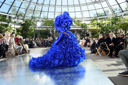 Удивительно: вот любуешься на новую осеннюю коллекцию Rodarte, а в душе поет весна — недаром даже сам показ состоялся в Калифорнии на фоне живописных цветущих инсталляций с причудливой подсветкой. Да и модели на подиуме напоминали современных нимф, облачившихся в пышные драпировки с тропическими бабочками, каскады из кокетливых оборок, сердец и бантов.