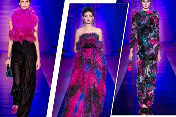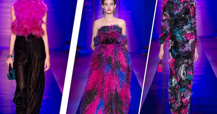 Цветовая палитра новой коллекции Джорджо Армани обещает сделать грядущий сезон необычайно ярким: представленная накануне Giorgio Armani Privé Couture переливается интенсивными оттенками розового, голубого и пурпурного.