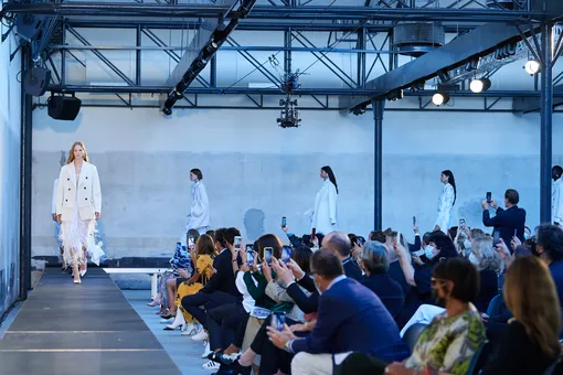 Показ N21 (и снова физический!) начался с серии удивительно лаконичных белых луков: Алессандро Дель Акве обычно не свойственны ни монохром, ни скромность при выборе декора или кроя. После вереницы довольно минималистичных, в духе 90-х, выходов во всех оттенках белого, серого и бежевого уже было легко поверить в то, что и он последовал примеру коллег и решил сделать ставку на чистоту и скромность. Но не тут-то было: постепенно в коллекции начинают появляться яркие цвета, которые образуют настоящий взрыв к середине шоу.