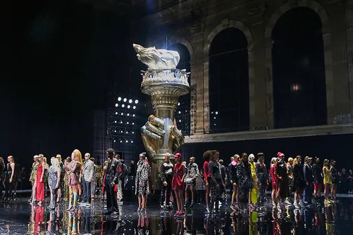 В этот раз и на подиуме было немало звезд: в новых образах Versace дефилировали Ирина Шейк, Джиджи Хадид, Кэндис Свейнпол, Эмили Ратаковски и Кайя Гербер. В память о кутюрье в осенней коллекции вновь появились два культовых платья: в одном из них блистала Дженнифер Лопез на церемонии вручения премий «Грэмми» в 2000 году (то самое, изумрудное, с разрезом до талии — вчера его с новым узором из сердец продемонстрировала Эмбер Валлетта), а в другом — черном, скрепленном крупными булавками — Элизабет Херли пришла на премьеру фильма «Четыре свадьбы и одни похороны» в 1994 году. Теперь эти платья, которые уже вошли в историю мировой моды, получили новую жизнь, а значит, жива и память о гениальном Джанни Версаче.