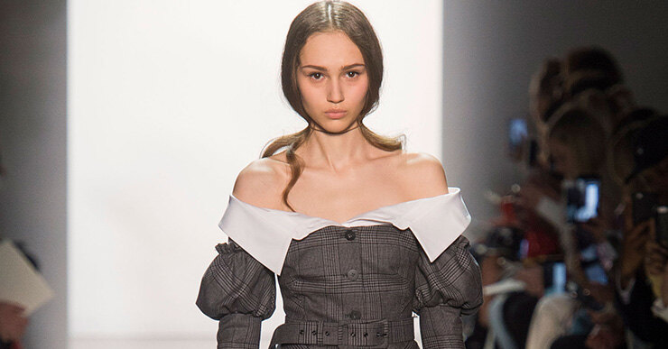 Как превратить офисный костюм в вечернее платье: возвращение басок, буфов и открытых плеч