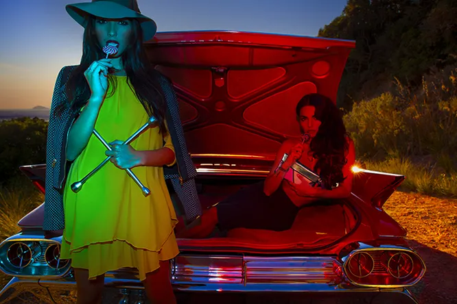 В своей новой капсульной коллекции Патриция Бамби замахнулась ни много ни мало на fashion-римейк культового фильма Ридли Скотта «Тельма и Луиза» – с той лишь разницей, что «сюжет» итальянка полностью перенесла в 60-е. Брюки-клеш с высокой талией, яркие мини-юбки, тонкие шелковые топы, кукольные пальто а-ля Твигги – дизайнер очень точно передала дух эпохи, при этом нисколько не изменив стилю бренда: все наряды идеально сочетаются с основной осенне-зимней коллекцией Patrizia Pepe. Ну а воплотить образы современных Тельмы и Луизы решено было доверить закадычным подругам Кьяре Биази и Анe Мойе Кальзадо: it-girls отлично вжились в роль феминисток, бегущих от старой жизни.