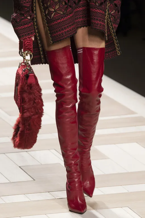 Но на этот раз все иначе: в коллекции есть ряд цветных моделей, но все чаще мех оставляют в покое. Шьют из него классические двубортные пальто и куртки, кроят из него воротники и оторачивают им манжеты лакированных плащей, дополняют алыми ботфортами до середины бедра и носят с клетчатым твидом в стиле «дольче».