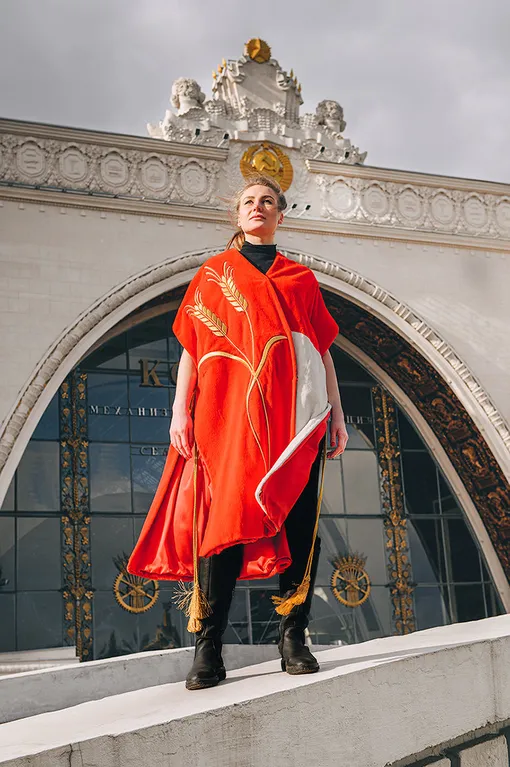 Коллекция выполнена из меха стриженой норки, который подходит как раз для непостоянной весенней погоды: в нем не жарко в солнечный день, зато он хорошо защищает от внезапных порывов ветра. Модели украшены ностальгическими рисунками, создать которые из-за множества мелких деталей мастерам бренда стоило большого труда. На кадрах лукбука быстро узнается символичная локация – павильоны ВДНХ и знаменитый «Буран».