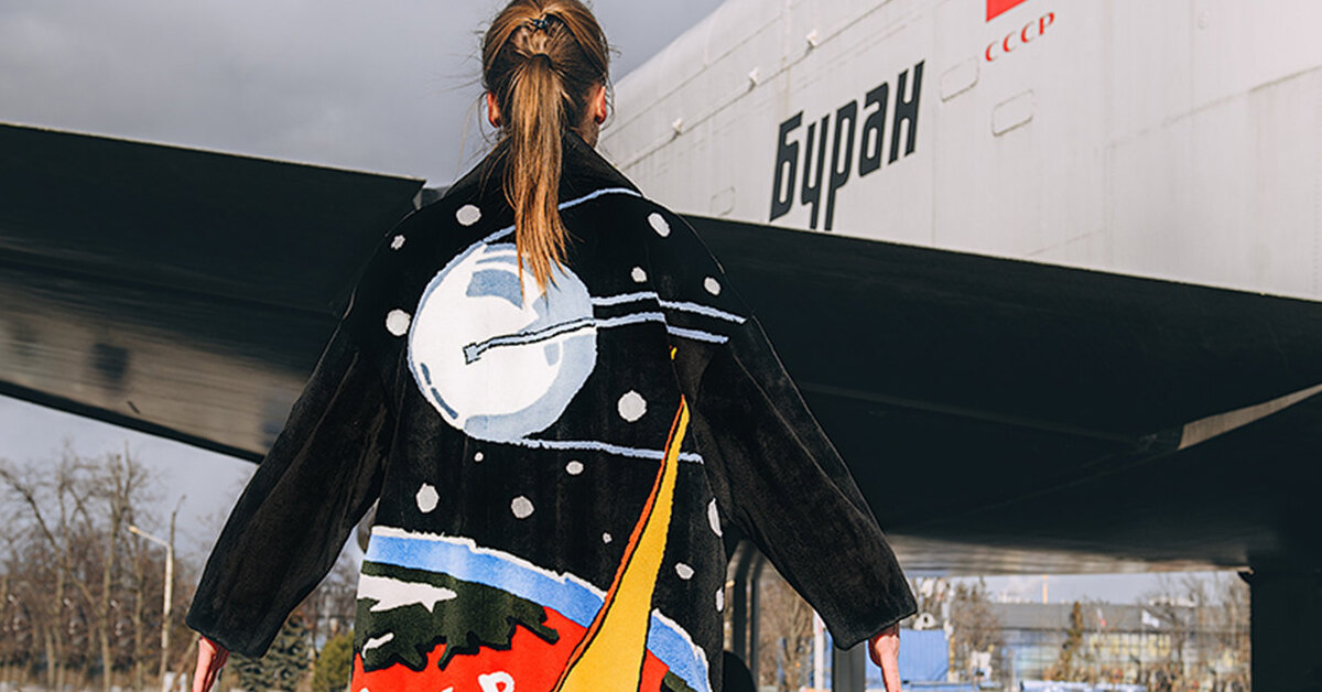 Коллекция выполнена из меха стриженой норки, который подходит как раз для непостоянной весенней погоды: в нем не жарко в солнечный день, зато он хорошо защищает от внезапных порывов ветра. Модели украшены ностальгическими рисунками, создать которые из-за множества мелких деталей мастерам бренда стоило большого труда. На кадрах лукбука быстро узнается символичная локация – павильоны ВДНХ и знаменитый «Буран».