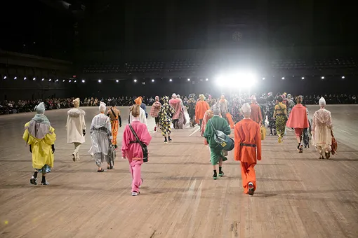 Под занавес NYFW свою новую коллекцию представил Марк Джейкобс, по традиции закрывший расписание нью-йоркского модного марафона. Снова выбрав в качестве места проведения показа здание военного склада Park Avenue Armory и вновь отказавшись от музыкального сопровождения, дизайнер выпустил моделей на «подиум» из деревянных досок маршировать только под звуки собственных шагов.