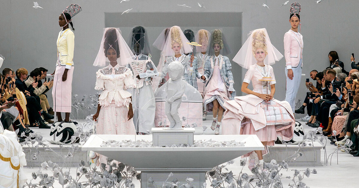 Кринолины в дельфинах и преппи в цветах маршмеллоу в коллекции Thom Browne