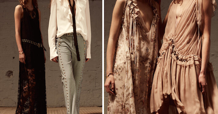 Круизную коллекцию Chloe отличает более расслабленное и романтичное настроение, чем все остальные. Новая работа дизайнера Клэр Уэйт Келлер смешала предметы, заимствованные из мужского гардероба, с теми, что заключают в себе абсолютную женственность, и сделала акцент на комфорте, заставив забыть о строгости и графичности. Оглянувшись на семидесятые, она нашла вдохновение в лондонской музыкальной сцене того времени, пропитанной духом свободы и полной деликатных контрастов, превращавших фолк-рок в новый стиль жизни.