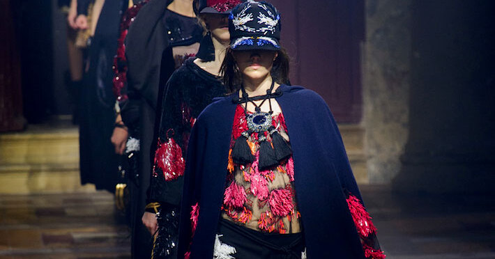 Разбирая винтажные архивы Дома Lanvin во время подготовки к ретроспективной выставке Jeanne Lanvin, открытие которой состоится 8 марта в музее Palais Galliera, Альбер Эльбаз не мог не вспомнить о своих корнях. Колорит марокканской Касабланки, связанный с местами, где вырос дизайнер, нашел отражение в новой осенне-зимней коллекции, которая была представлена накануне в Париже. Платья на манер марокканских одежд, аксессуары из змеиной кожи, декор из овчины, этнические кулоны и обильная вышивка золотом отдают дань вековым традициям северо-африканской страны. Известный страстью к небольшому преувеличению, Альбер создал серьги, повторяющие по размеру и форме декоративные кисточки на поясах, шляпах – и только выиграл, снова продемонстрировав очередную знаковую для бренда коллекцию.
