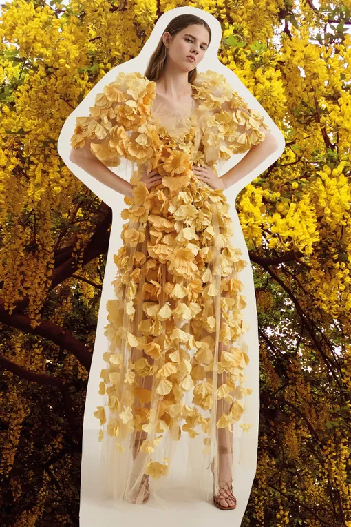 При создании новой круизной коллекции Стелла МакКартни черпала вдохновение из мира природы. Отсюда - искусственный мех с леопардовыми пятнами и платья, усыпанные изящными цветочными лепестками, вышитыми на тюле вручную. Помимо основных моделей в Resort 2020 вошли также наряды из капсулы под названием We Are the Weather: платья и брюки из органического хлопка, легкое пуховое пальто и футболки с фразами из книги приятеля Стеллы Джонатана Сафрана Фоера (научно-популярная работа о повседневных решениях, которые помогут сохранить планету). Главным мотивом коллекции стал мультяшный, нарисованный от руки солнечный луч, окруженный облаками, а также вышитые фразы «Спасение планеты начинается с завтрака» и «Наша планета — это ферма».