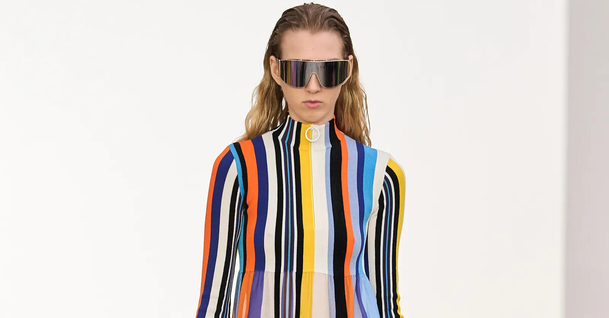 На входе в локацию, которой стал кампус интернационального университетского городка в Париже, была выставлена инсталляция из желтого квадрата и красного треугольника авторства американского художника и скульптора Эльсуорта Келли. Она задала основной тон коллекции — на подиуме появились колорблок-образы, продолжающие традицию «громкой моды» и по своей насыщенности напоминающие квадраты Мондриана. Солнечно-желтый, алый, электрический синий и насыщенный апельсиновый сформировали основную палитру шоу. Сами Джек и Лазаро рассказали, что хотели бы изучить «испанские» коды бренда и привнести в него больше света — именно поэтому визуал комплектов словно был позаимствован у витражных стекол на зданиях Антонио Гауди. Также была отдана дань и узнаваемой эстетике Андерсона — архитектурные силуэты с бахромой, драпировками и баббл-фасоны гармонично (и без переборов) перекликались со сложными фактурами в виде вельвета, тонкого вязаного хлопка и мягких «пластилиновых» тканей.